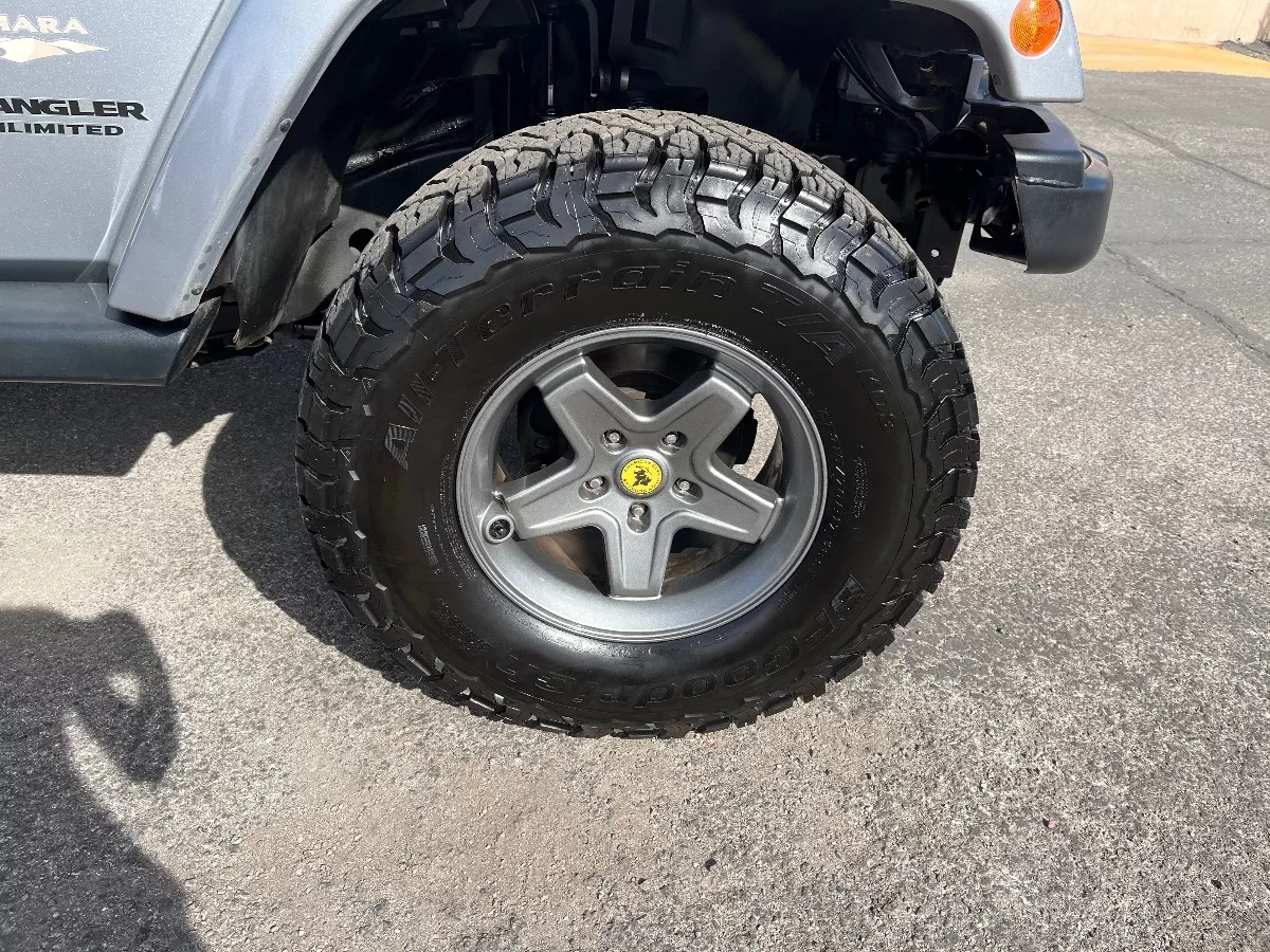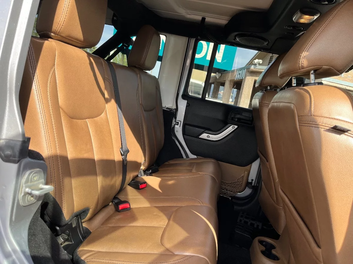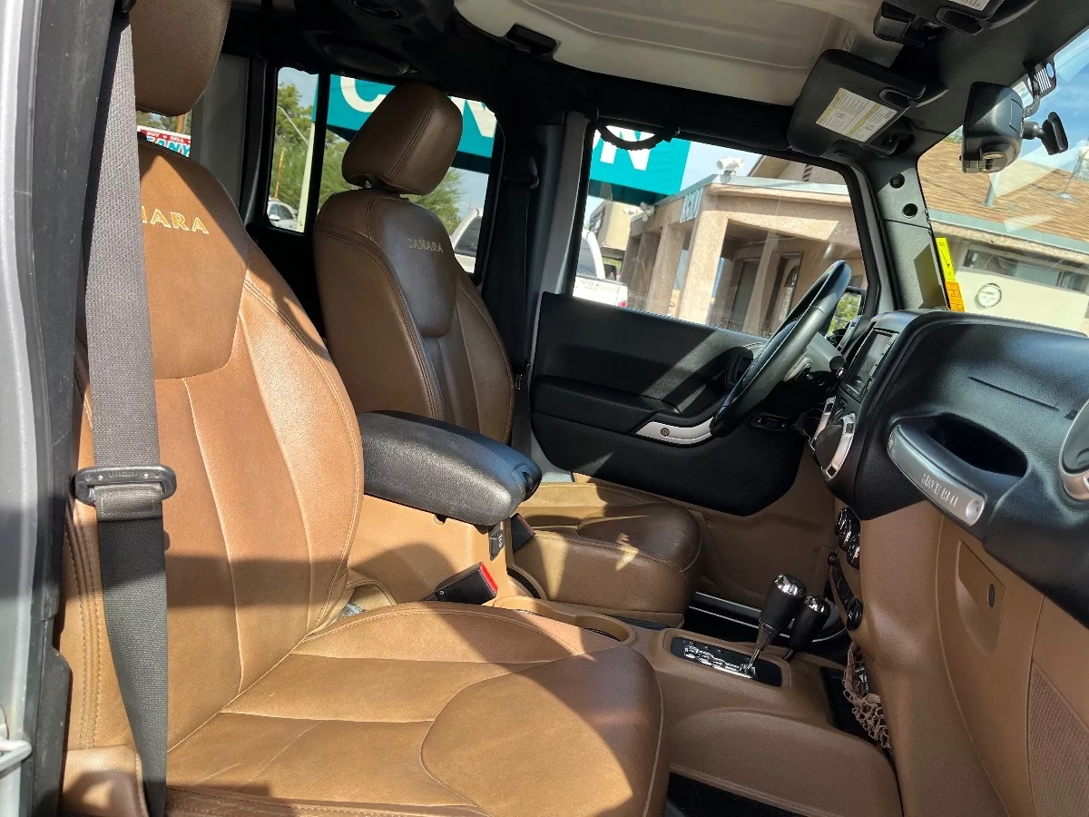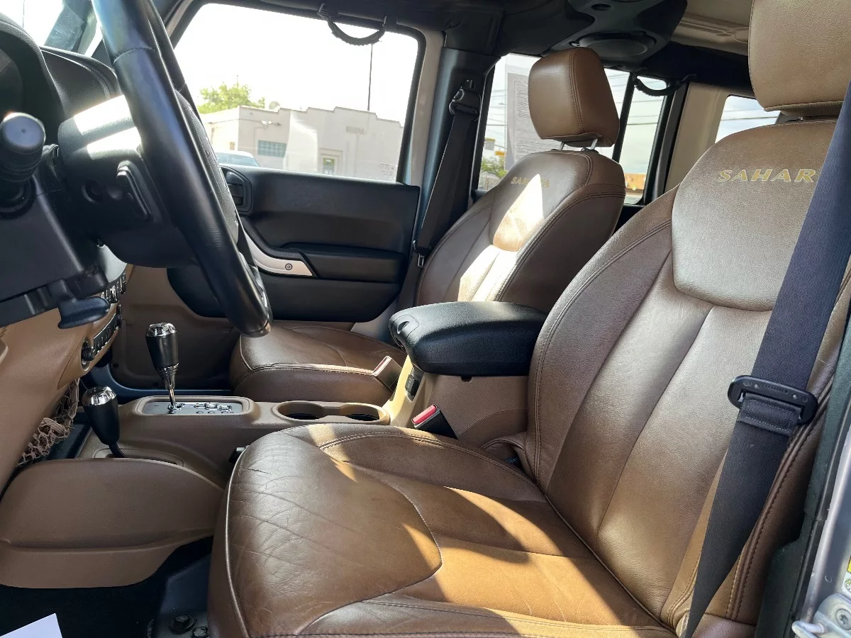 This 2013 Jeep Wrangler Unlimited Sahara 4×4 blends classic Jeep styling with premium features and trail-ready upgrades. Finished in Billet Silver Metallic with a Black/Dark Saddle leather interior, it’s lifted, clean, and ready for adventure — the perfect mix of comfort and capability.