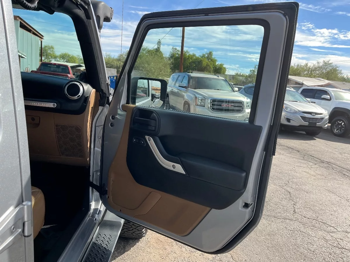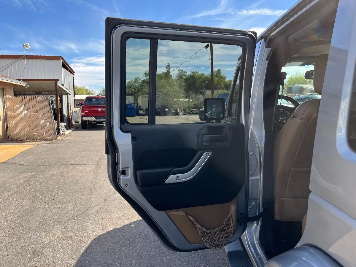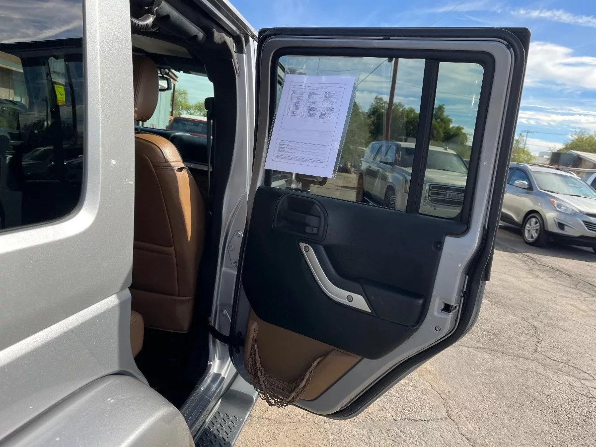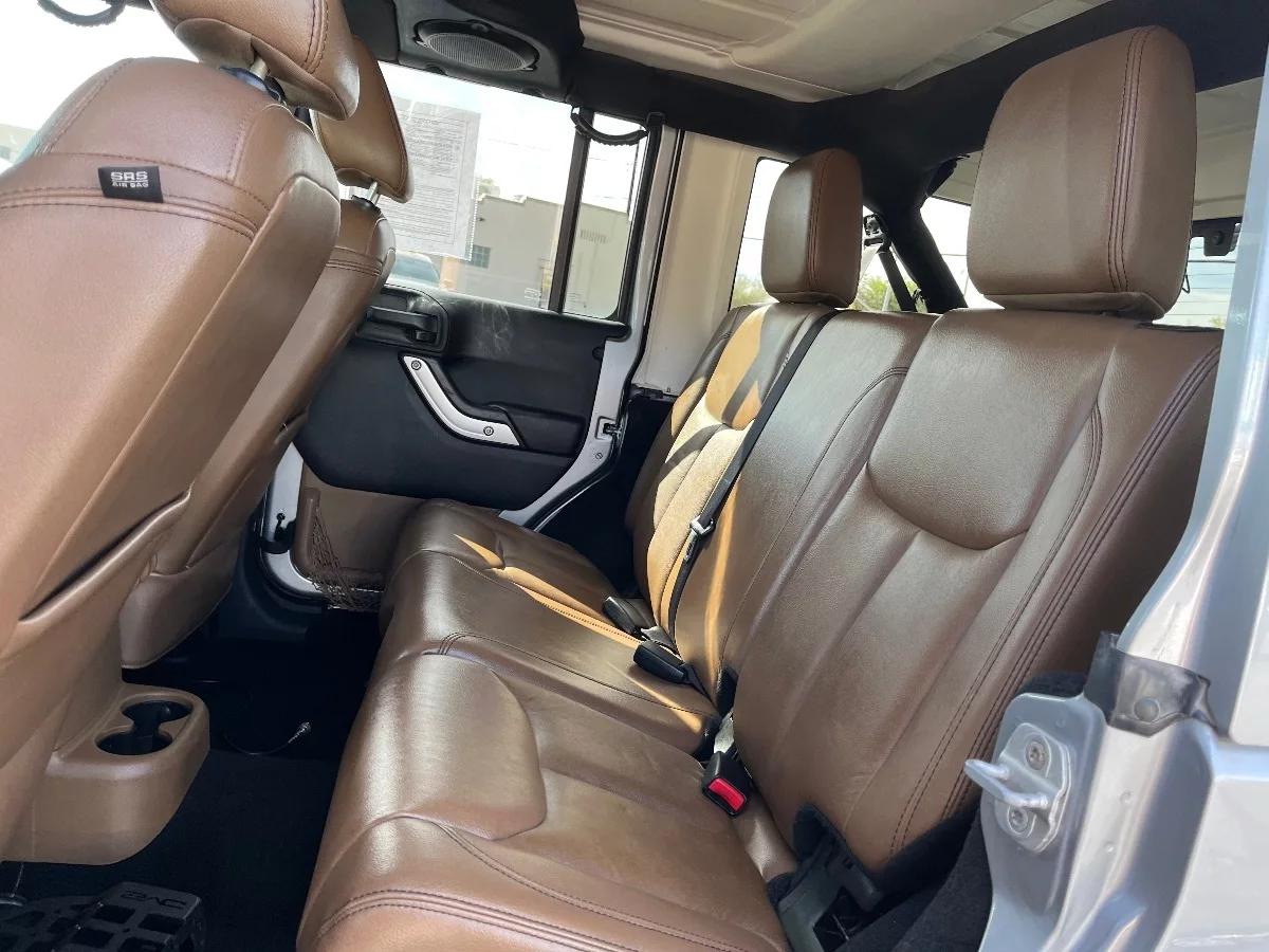 This 2013 Jeep Wrangler Unlimited Sahara 4×4 blends classic Jeep styling with premium features and trail-ready upgrades. Finished in Billet Silver Metallic with a Black/Dark Saddle leather interior, it’s lifted, clean, and ready for adventure — the perfect mix of comfort and capability.