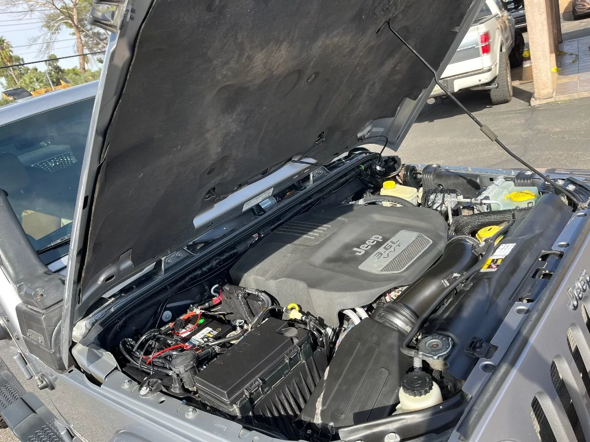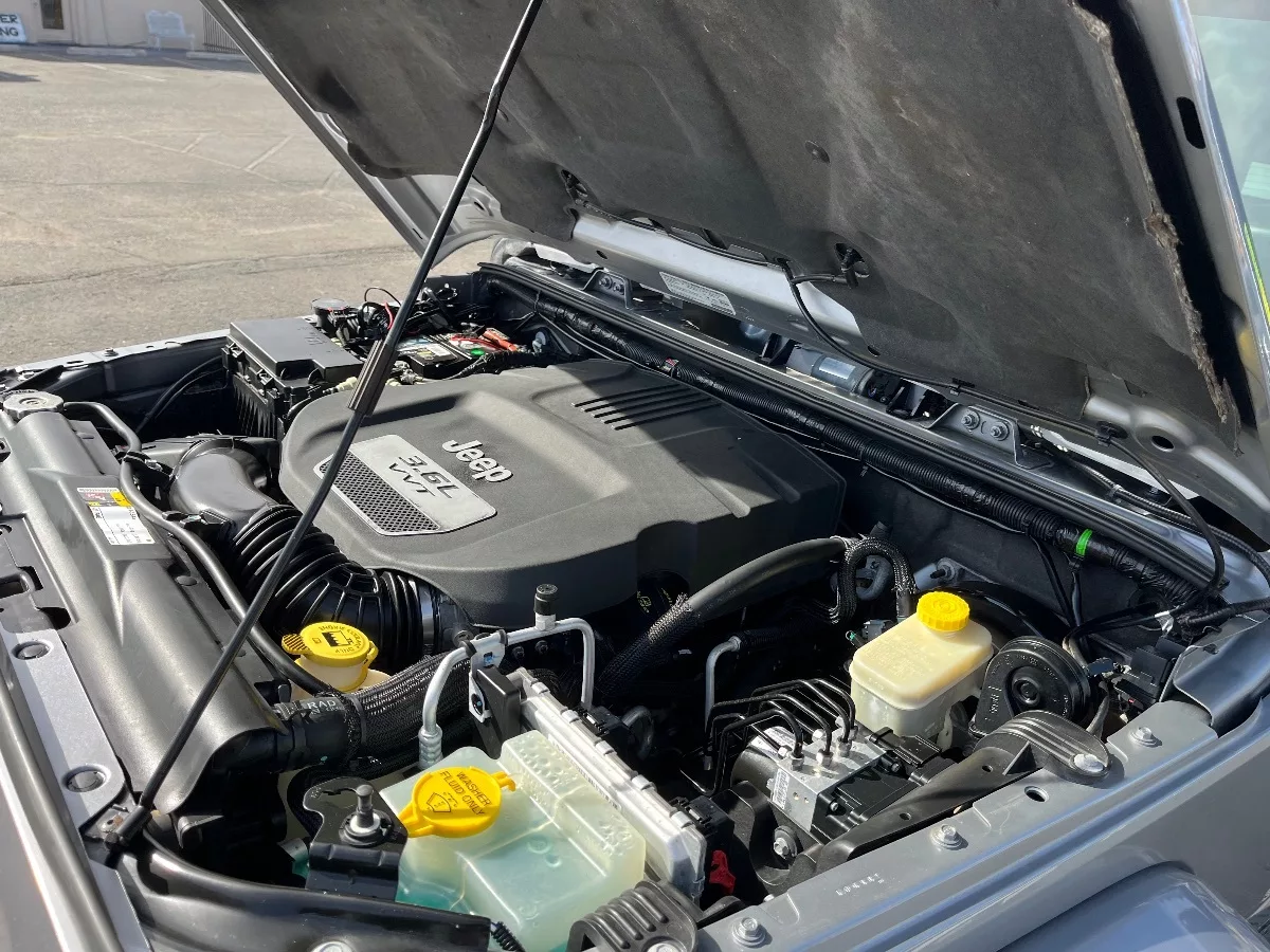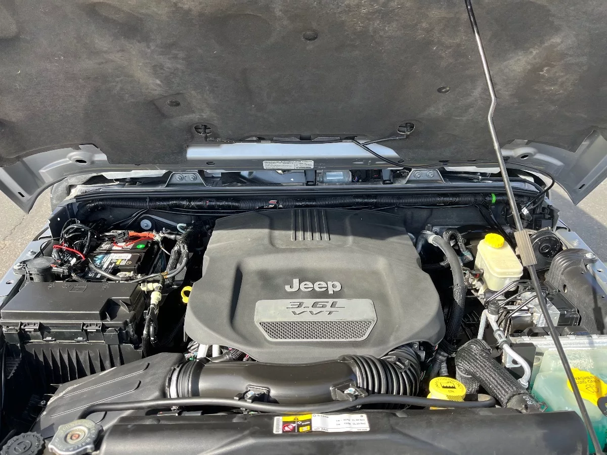 Under the hood, you’ll find the trusted 3.6L Pentastar V6 paired with a 5-speed automatic transmission, delivering smooth, reliable power on the road or off. The Command-Trac 4WD system, Hill Descent Control, and upgraded stance make this Wrangler ready for any terrain.