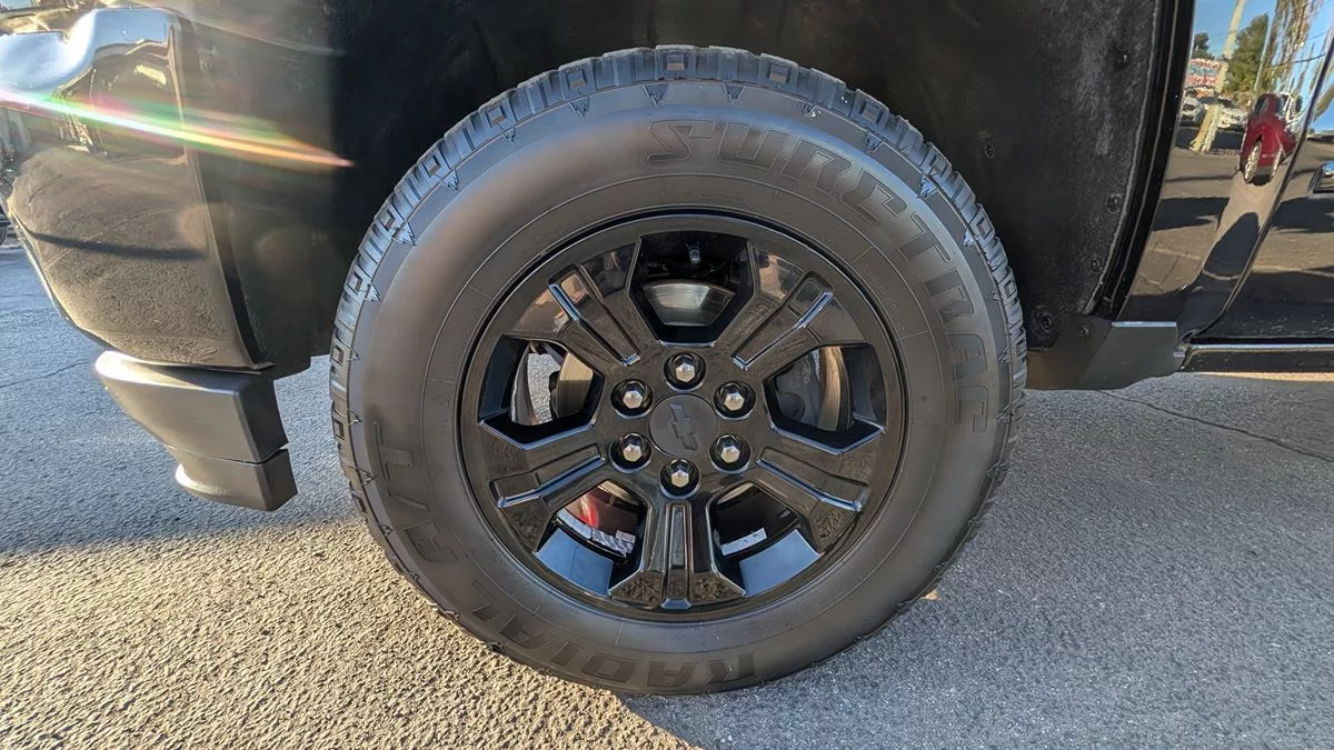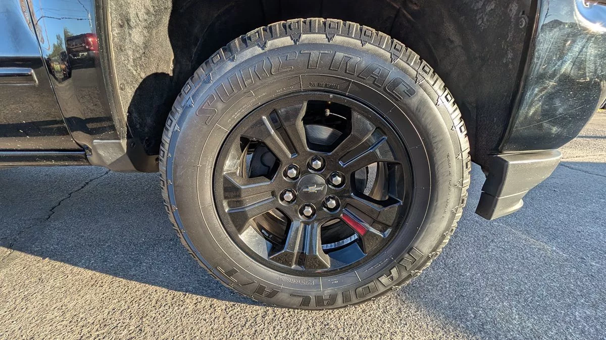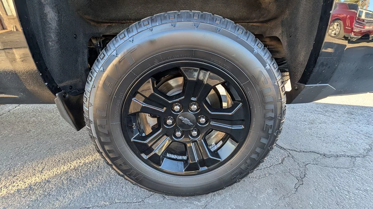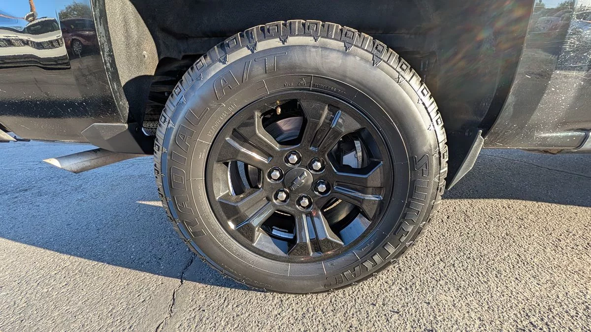 Finished in Black with Jet Black leather, this Silverado features the sought-after Midnight Edition package, including 18-inch black alloy wheels, Goodyear Wrangler Duratrac all-terrain tires, black bowties, Z71 off-road suspension, skid plates, and body-color bumpers, moldings, and mirrors for a stealthy, unified look.